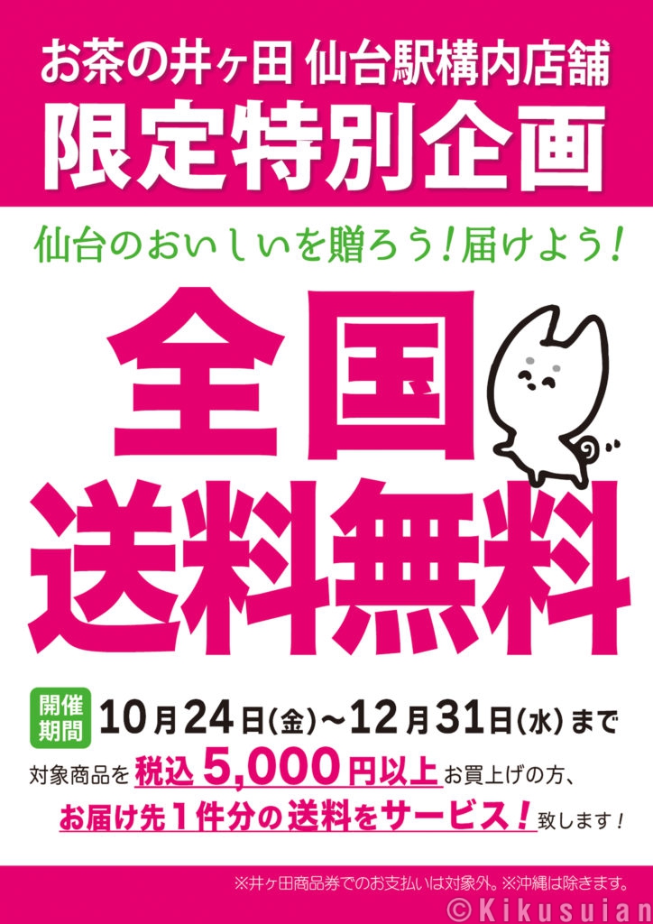 喜久水庵 > 仙台駅直営店限定「対象商品税込5,000円以上で送料無料」