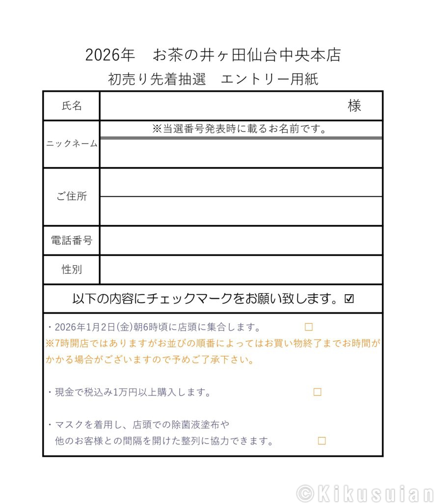 喜久水庵 > 2026年初売先着エントリーを開始いたします!